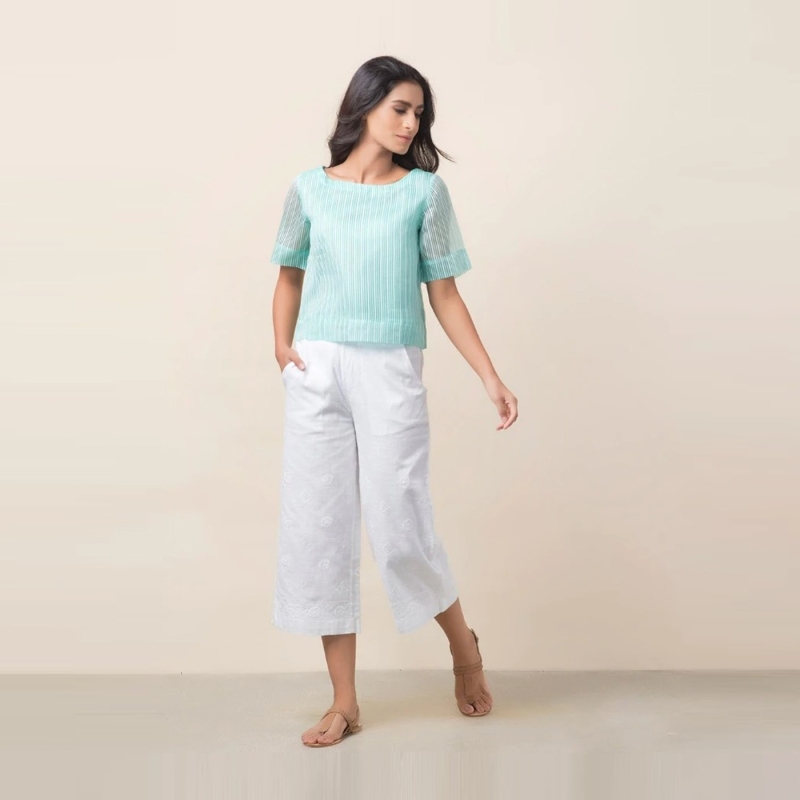 فيسكوز الحرير مخطط بلوزة قصيرة