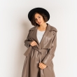 المرأة براون الصلبة الخط المفتوح معطف خندق الخط الطويل مع حزام