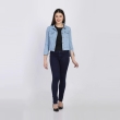 Blue solid lightweight denim jacket, has a spread collar, 2 pockets ,has a button closure, three-quarter sleeves, straight hemline, cotton lining.