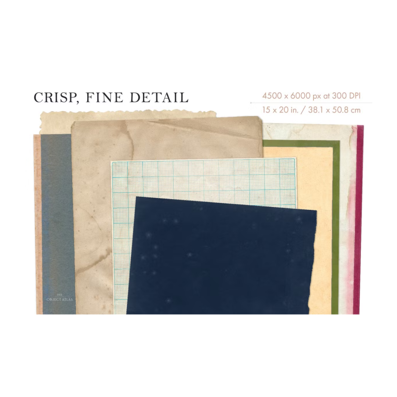 A collection of 150 high-resolution, vintage paper textures, sampled from real antique paper. Beautiful backgrounds and overlays for print and web design.